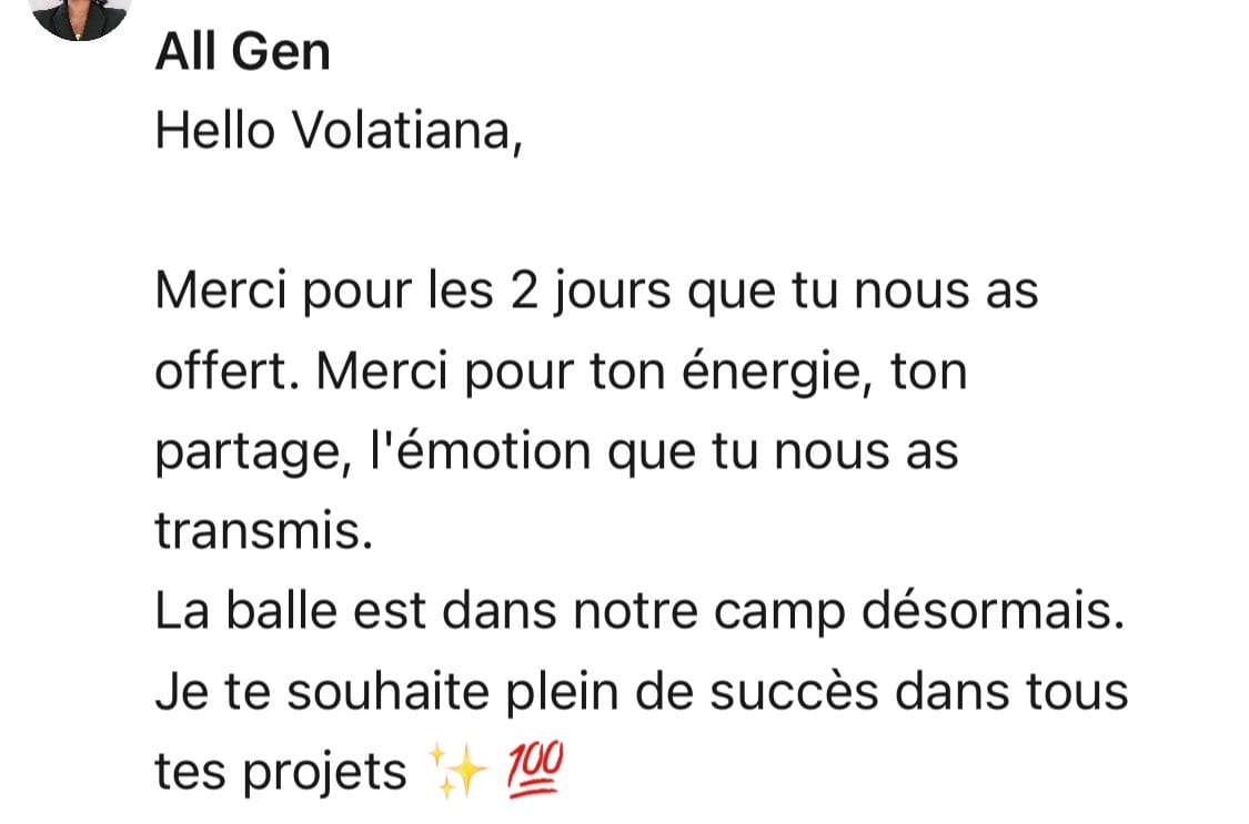 C’est dans cette dynamique que sont nés les Masterclass de Volatiana et le séminaire ALL’GEN — des espaces pour dépasser ses limites et incarner un leadership aligné.